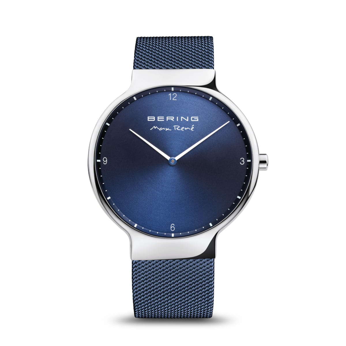 Die vom dänischen Top-Designer Max Réne kreierte COLLECTION strahlt eine schlichte und pure Eleganz aus, die für mehr Individualität, Vielfalt und Zeitlosigkeit steht. Die Kombination aus minimalistisch-dänischem Design und maximaler Funktionalität repräsentiert ein stilvoll auffallendes Uhrwerk- passend für jeden Anlass. Das Sunray Zifferblatt besticht durch eine elegante Schlichtheit im blauen Look und wird durch ein besonders hartes, kristallklares und kratzfestes Saphirglas geschützt. Ein passend dazu blaufarbenes Milanaiseband setzt auffallend moderne Akzente. Zusätzlich verleiht das feingliedrig gearbeitete Milanaiseband und glanzvolle Edelstahl-Gehäuse der Uhr einen edlen, beinahe vornehmen Touch. Unter dem Motto „Change colors, change straps, change looks“ vereint das Konzept von Max René vielfältige Looks in einem Uhrendesign. Mithilfe einer einzigartigen Schiebetechnik lassen sich die Armbänder der Max René COLLECTION in Sekundenschnelle ganz einfach austauschen und durch ein anderes ersetzen. Spielraum für mehr Individualität und modische Vielfalt! Kollektion: Max René Kategorie: Uhr Geschlecht: männlich Glasart: flaches Saphirglas Uhrwerk: Quarz Gehäusefarbe: silber glänzend Gehäusehöhe: 7 mm Gehäusebreite: 40 mm Gehäusedurchmesser: 40 mm Gehäusematerial: Edelstahl Armbandmaterial: Milanaise Armbandfarbe: blau Armbandbreite: 20 mm Schließenart: Klappverschluss Zifferblattfarbe: blau Wasserdichtigkeit: 5 ATM