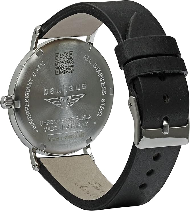 Die Bauhaus Classic Quarz 2130-2 vereint zeitlose Eleganz mit klarer, minimalistischer Formensprache. Das schwarze Ziffernblatt mit weißen Zahlen und Indizes sorgt für eine markante Optik und eine hervorragende Ablesbarkeit. Durch das reduzierte Design im Bauhaus-Stil wirkt diese Herrenuhr klassisch, modern und stilbewusst zugleich.
