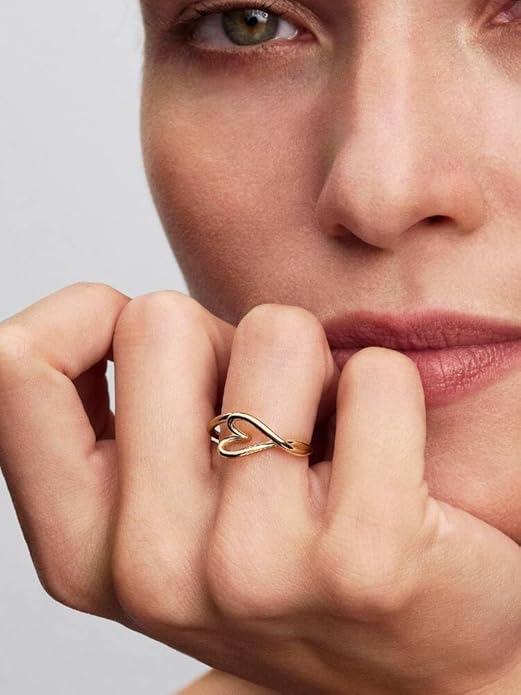 PANDORA Essence Organisch Geformtes Herz Kleiner Ring mit 14K vergoldeter Metalllegierung, Größe: 54, 164361C00-54