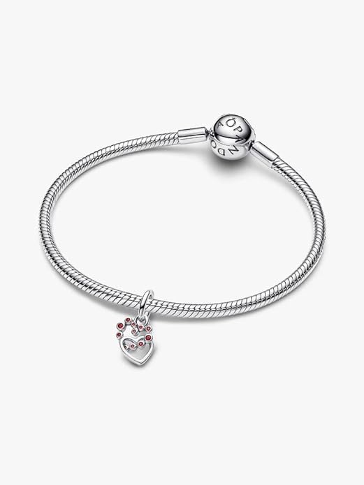 PANDORA Moments Verbundene Herzen & Rote Steine Charm-Anhänger aus Sterling Silber mit Zirkonia, Kompatibel Moments, 794435C01