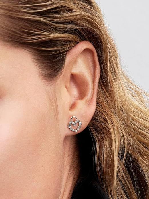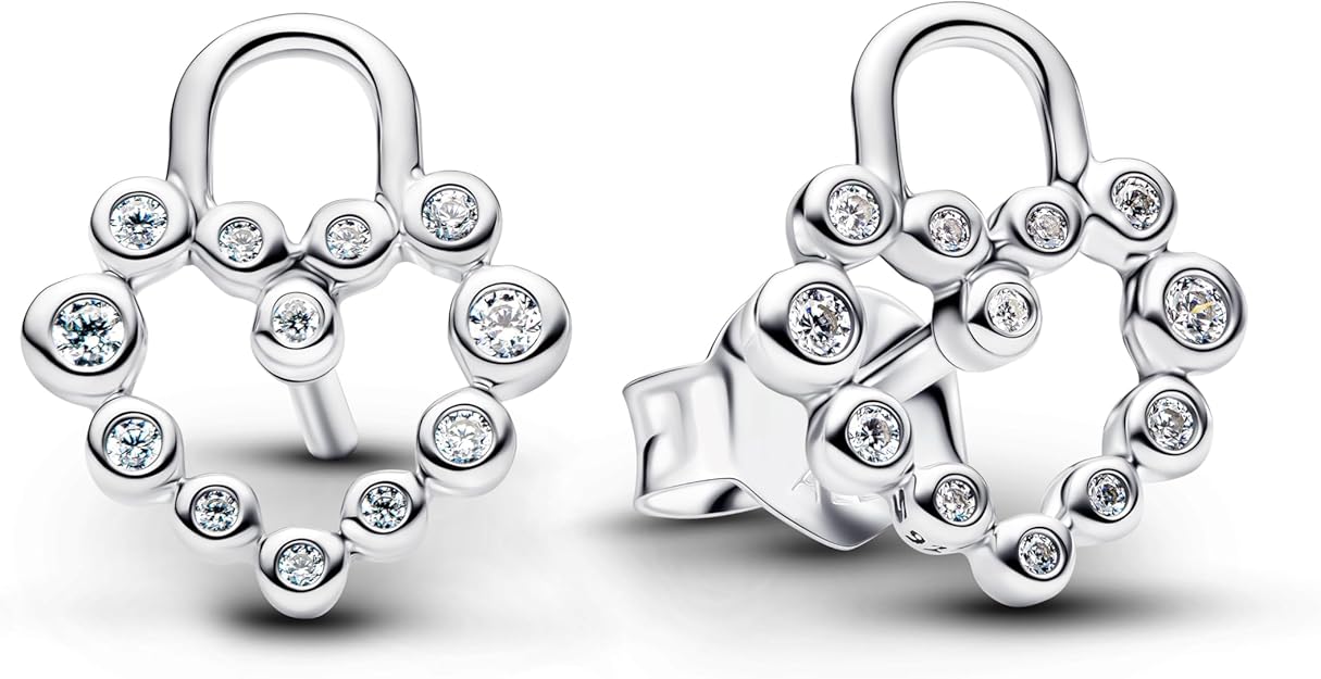 Pandora Moments Funkelndes Herz Vorhängeschloss Ohrstecker aus Sterling Silber mit Zirkonia, 294419C01