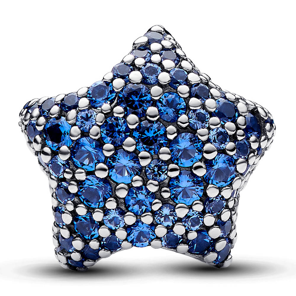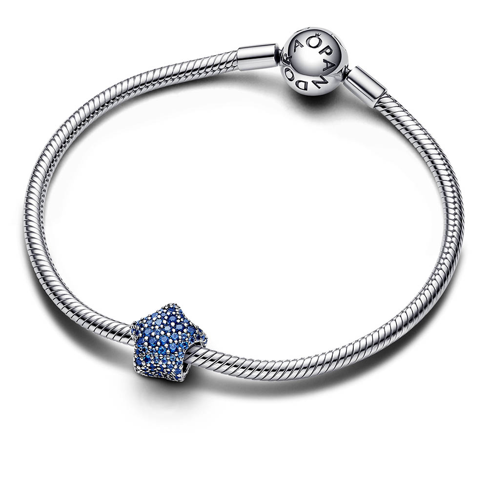 Greife nach den Sternen mit dem Auffälligen Pavé-Stern Charm aus unserer Pandora Moments-Kollektion. Dieses Statement-Charm aus Sterling-Silber ist mit funkelndem Pavé besetzt und erhält mit sanft abgerundeten Kanten ein modernes Update. Mit diesem Schmuckstück verleihst du jedem Armband oder jeder Kette zusätzliche Tiefe und traumhafte Leichtigkeit. Dieses sternförmige Charm ist mit blauem künstlichem Kristall-Pavé überzogen und bringt perfekten festlichen Glanz in jeden Look.