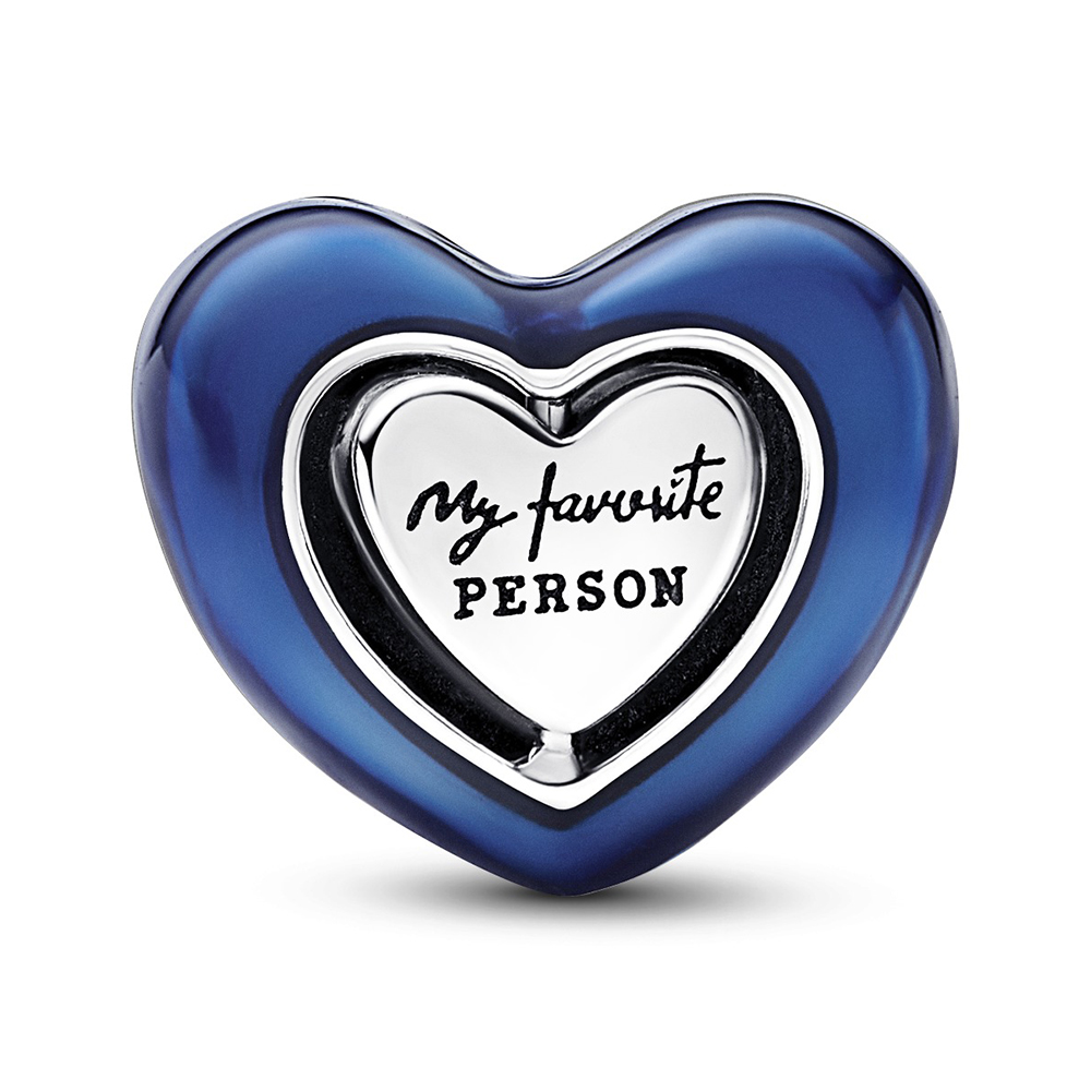 Spüre die Liebe in kühlen Blautönen mit dem Blaues Drehbares Herz Charm. Das herzförmige Schmuckstück aus Sterling-Silber ist mit von Hand aufgetragener, durchsichtiger blauer Emaille verziert, die deinem Charm-Stack einen besonderen Farbakzent verleiht. An einer Seite dieses Charms befindet sich eine rotierende Scheibe, die auf der einen Seite blau funkelt und auf der anderen die eingravierte Botschaft My favourite PERSON hat. Bitte beachte, dass die Scheibe nur gedreht werden kann, wenn sie nicht gestylt ist. Deshalb empfehlen wir dir, vor dem Tragen zu entscheiden, welche Seite gezeigt werden soll. Schenke es deinen besten Freunden und lasse sie wissen, was du für sie empfindest!