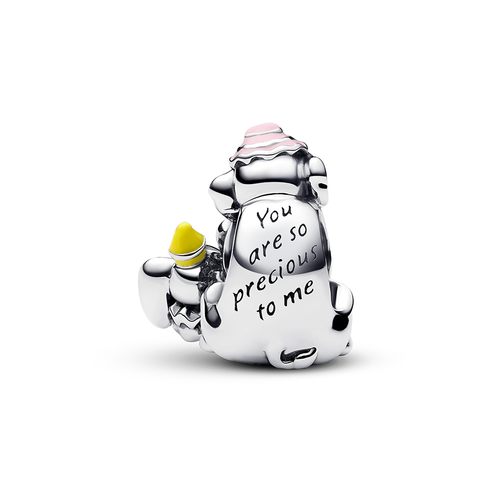 Feiere die Freude und den Zauber der Mutter-Kind-Bindung mit dem Disney Dumbo- und Mum-Charm. Dieses Charm aus Sterling-Silber hat die Form von Disneys Dumbo und seiner Mutter, Mrs. Jumbo, die jeweils einen bunten Hut tragen und sich an ein rosa Herz zwischen sich schmiegen. Auf dem Rücken von Mrs. Jumbo ist die Botschaft You are so precious to me eingraviert. Dieses Charm symbolisiert die Zärtlichkeit und Kraft der bedingungslosen Liebe einer Mutter und erinnert uns außerde, daran, dass selbst die kleinsten Geschöpfe Außergewöhnliches erreichen können.