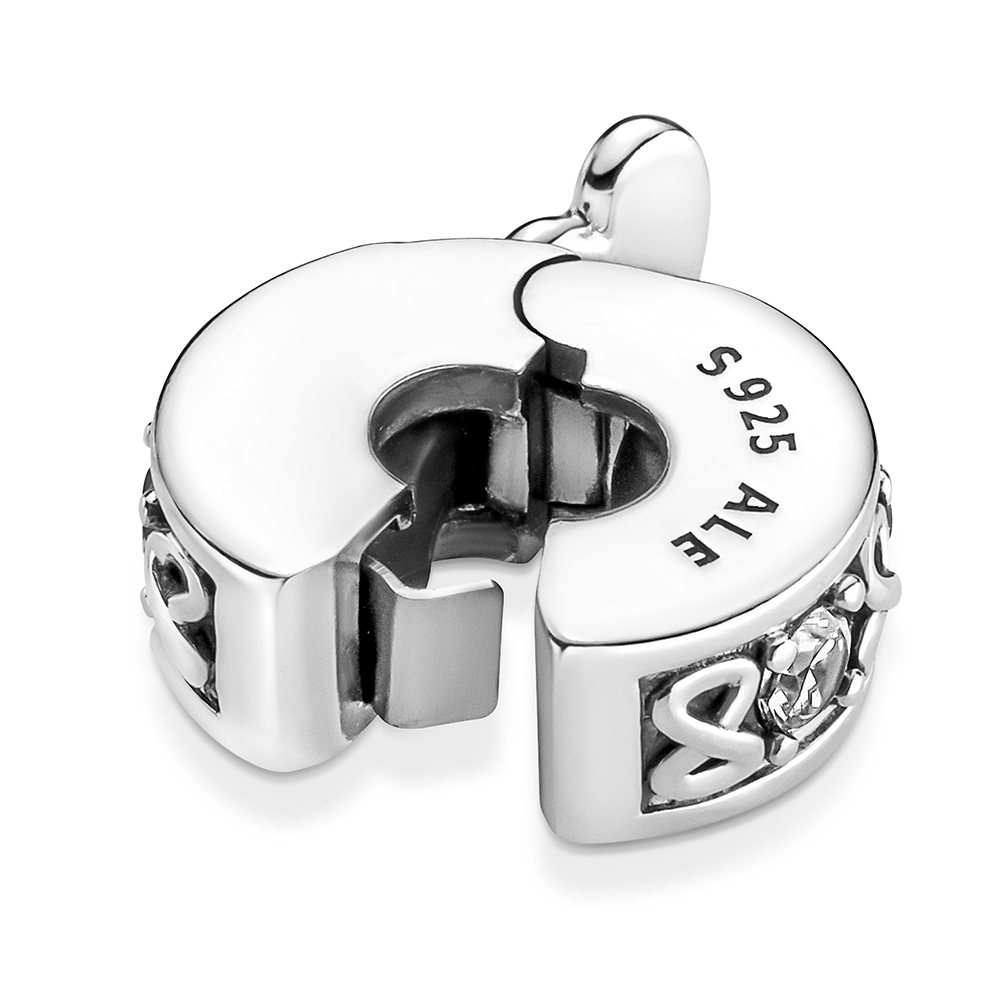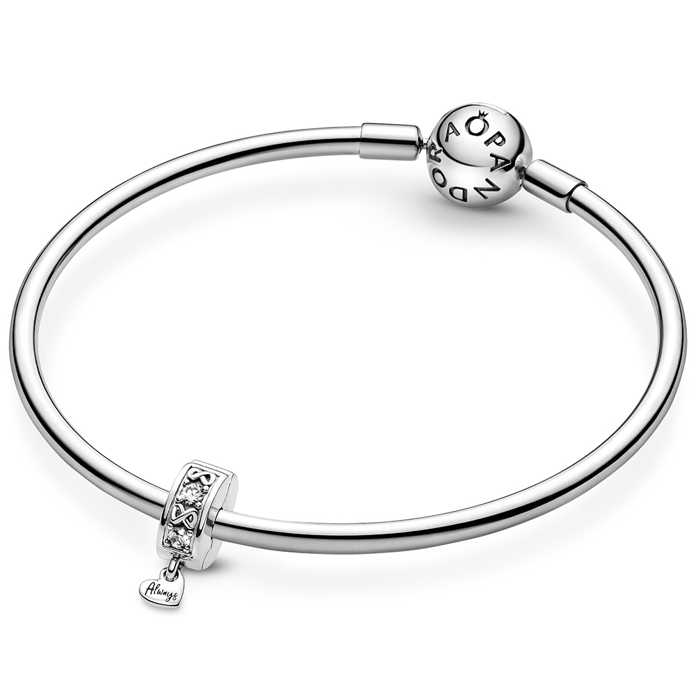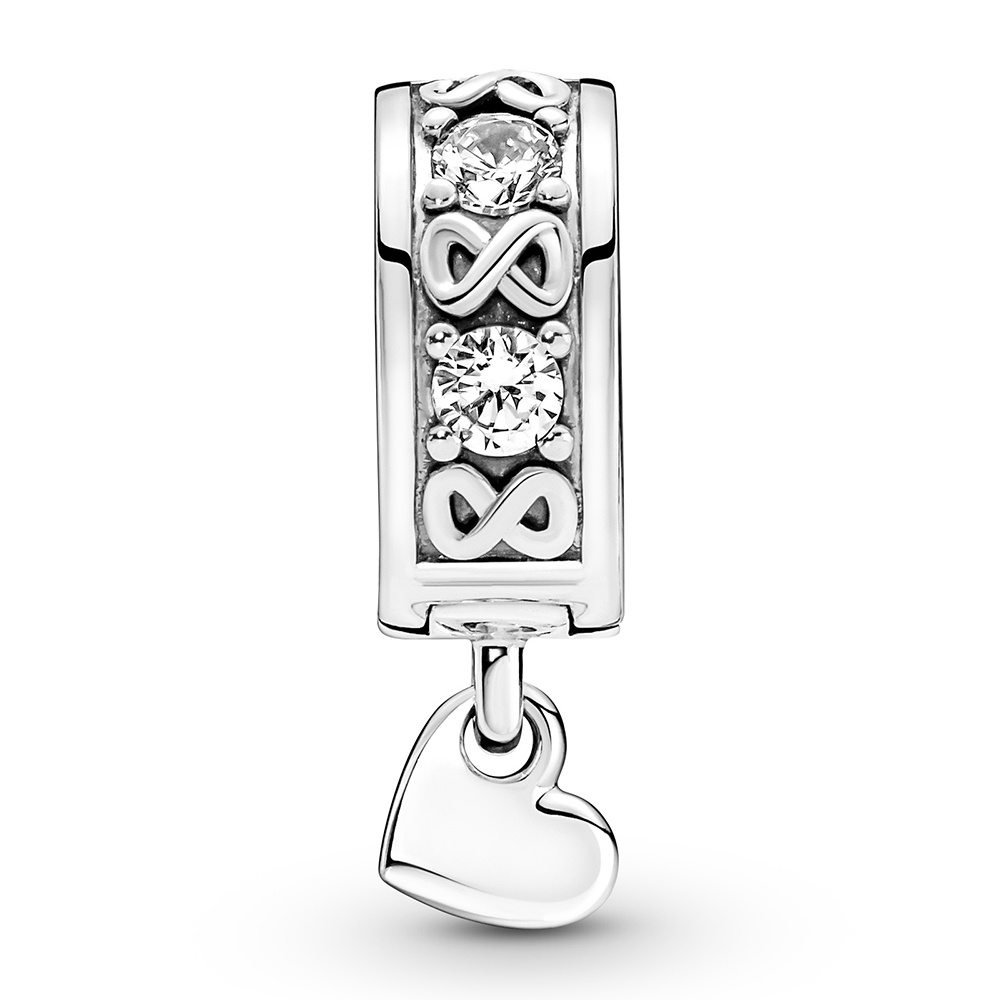 Der funktionale und dennoch stilvolle Familie Für Immer Pavé Clip-Charm hat ein Muster aus abwechselnd Unendlichkeitssymbol und Stein am Rand. Der Herzanhänger aus poliertem Sterling-Silber ist mit Always graviert, um uns daran zu erinnern, dass die Liebe der Familie ewig ist. Dieses Clip-Charm hat einen Silikonkern, um ein Verrutschen zu verhindern, und kann überall auf einem Armband gestylt werden, außer an erhabenen Charm-Teilern.