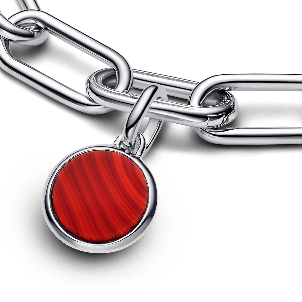 Miniaturgröße, maximale Wirkung. Dieses Charm ist aus Sterling-Silber und Murano-Glas gefertigt und von dem roten Achatstein mit seiner leuchtenden Farbe und dem Welleneffekt inspiriert, der Schutz, Mut und Macht symbolisiert. Die Rückseite ist eine leere Leinwand für deine persönliche Gravur. Es ist das perfekte persönliche Geschenk für alle auf deiner Liste – auch für dich selbst.