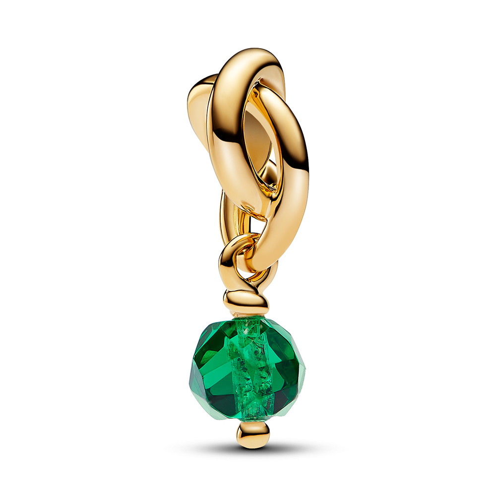 Trage ein Symbol der Ewigkeit, das deine Persönlichkeit zum Ausdruck bringt. Dieser vergoldete Charm-Anhänger besteht aus einem dreifach geknoteten Kreis, der wie ein Unendlichkeitszeichen verschlungen ist. Der Knoten trägt einen facettierten, royalgrünen künstlichen Kristall, der vom Charm herabhängt. Trage ihn als farbenfrohen Akzent an deinem Trägerschmuckstück oder verschenke ihn an eine Person, die immer Teil deines Lebens sein soll.