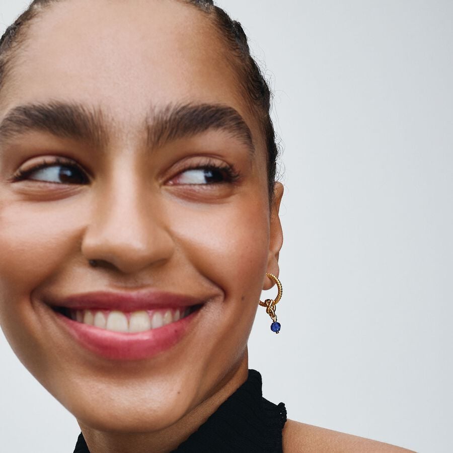 Trage ein Symbol der Ewigkeit, das deine Persönlichkeit zum Ausdruck bringt. Dieser vergoldete Charm-Anhänger besteht aus einem dreifach geknoteten Kreis, der wie ein Unendlichkeitszeichen verschlungen ist. Der Knoten trägt einen facettierten, phloxrosafarbenen künstlichen Kristall, der vom Charm herabhängt. Trage ihn als farbenfrohen Akzent an deinem Trägerschmuckstück oder verschenke ihn an eine Person, die immer Teil deines Lebens sein soll.