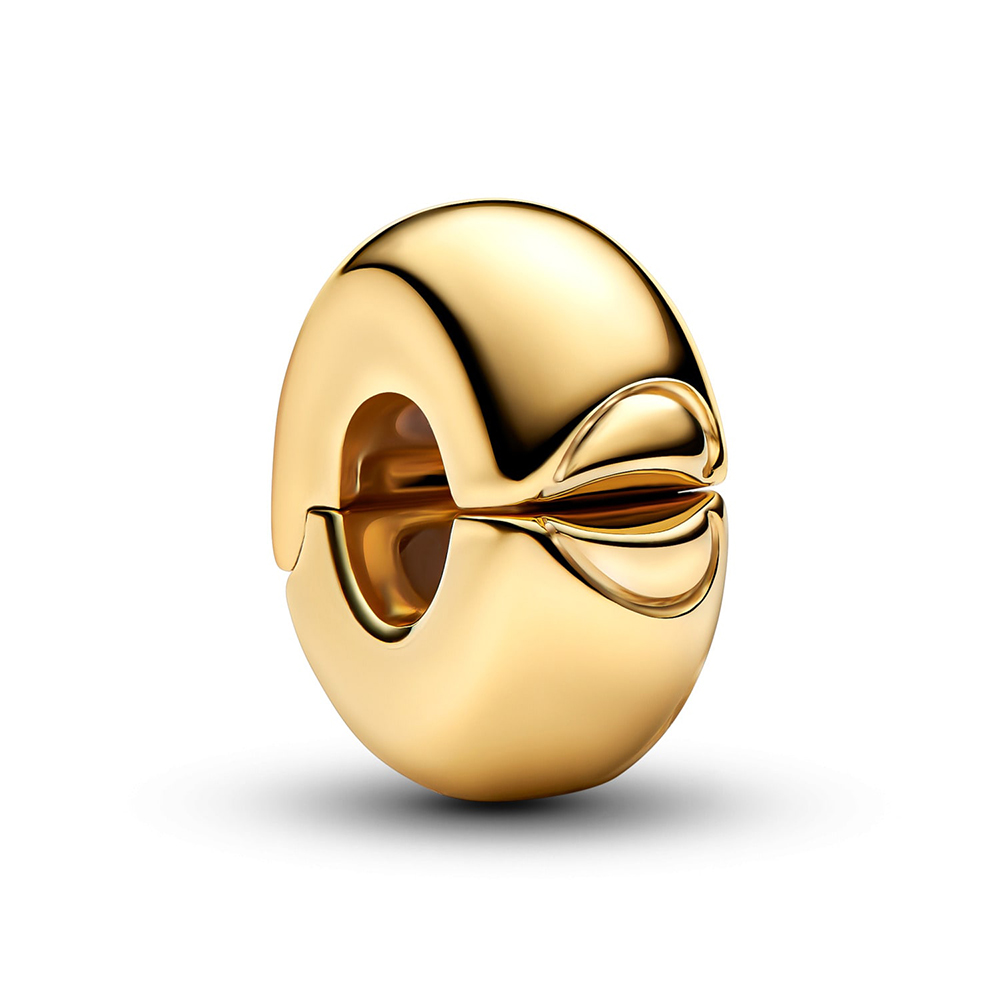 Feiere die Liebe mit unserem Rundes Clip-Charm mit Herzmotiv, wenn die beiden Hälften des Herzens zusammenklicken, wenn das Charm befestigt wird. Der warme Farbton unserer Gold-Plattierung passt gut zu anderen goldfarbenen Schmuckstücken. Das Design mit Silikon an der Innenseite sorgt für einen sicheren Halt und ist kleiner als Standard-Pandora Moments Clip-Charms – perfekt, um einen dezenten Hauch von Symbolik hinzuzufügen. Trage es alleine oder halte deine Lieblingscharms an Ort und Stelle – das ideale Finish für einen romantischen Look.