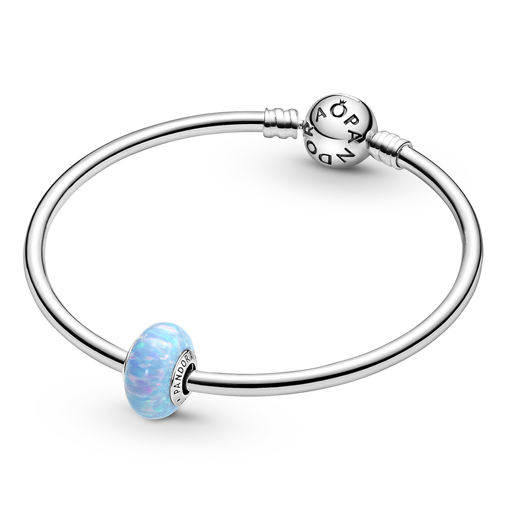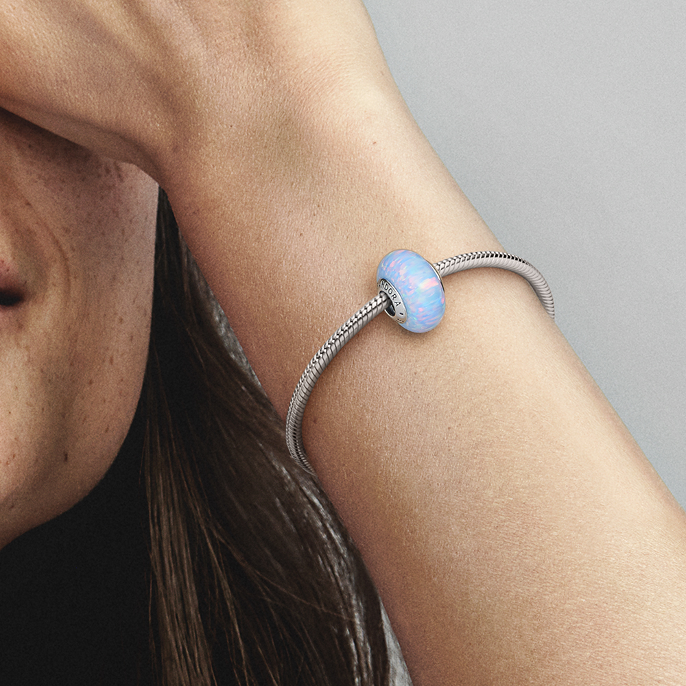 Dieses wunderschöne Charm mit im Labor hergestelltem Opal ist von schimmernden blauen Meereswellen inspiriert, die die Sommersonne reflektieren, und die perfekte Ergänzung für deinen Sommerlook. Es hat einen Kern aus Sterling-Silber mit dem Pandora Logo auf einer Seite, umgeben von einem im Labor hergestellten Opal, der mit sanften Farben und glitzernden Streifen schimmert. Jeder Stein ist einzigartig, genau wie du.