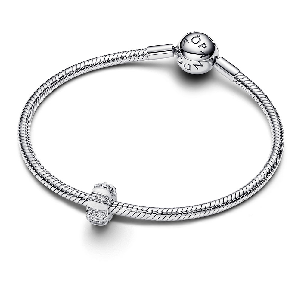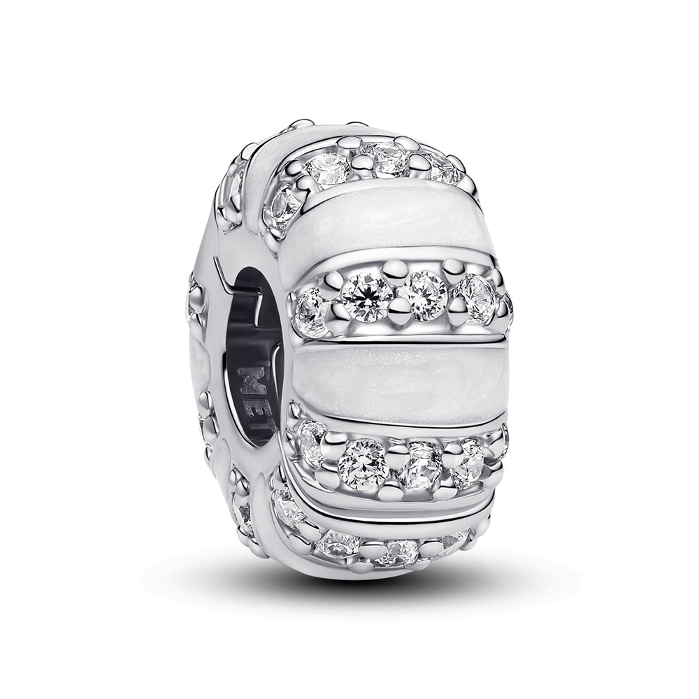 Bring deinen Look mit dem Steine und Emaille Clip-Charm in kühlen Farben zum Strahlen. Dieses Charm aus Sterling-Silber ist mit abwechselnden Reihen funkelnder Steine und schimmernder weißer Emaille besetzt, die einen faszinierenden Kontrast zu der Basis des Charms darstellen, die auch einen Silikonkern im Inneren des Clips hat. Das Design des Charms ist von Motiven der Widerstandsfähigkeit und Schönheit inspiriert und symbolisiert die vielen Möglichkeiten, die du in dir trägst, ähnlich den Möglichkeiten, die in einem kleinen, aber eleganten und sorgfältig gefertigten Schmuckstück stecken.