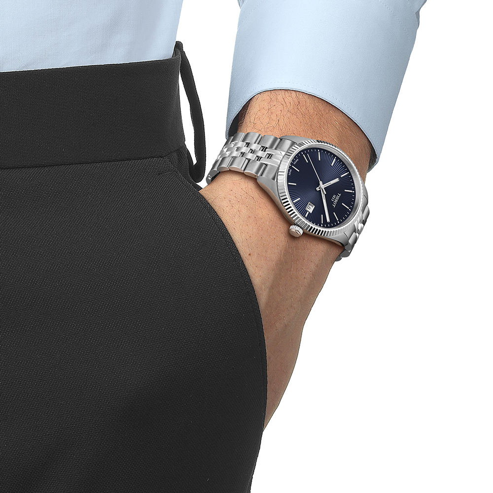 Im Inneren der Uhr schlägt ein präzises Swiss Made Quarzwerk mit Anzeige des Endes der Batterielebensdauer (EOL (End of Life)-Funktion). Das ebenso massive wie flexible 316L-Edelstahlarmband besitzt eine Butterfly-Faltschließe mit Drückern und hält die Tissot Ballade 40mm sicher am Handgelenk.