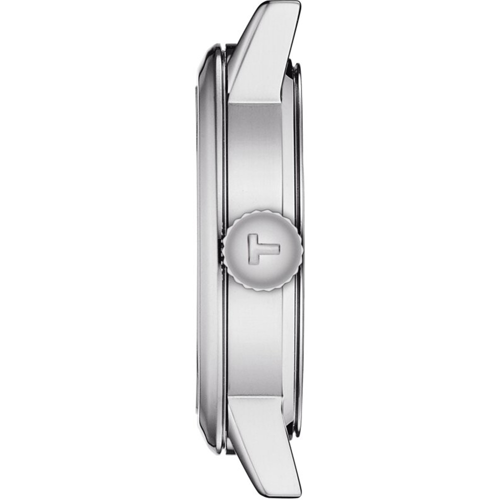 - Zifferblatt silberfarben mit Indexen und vollständiger Minuterie. Zeigt Stunden, Minuten, Sekunden, Datum bei 3 Uhr, Tissot Logo.