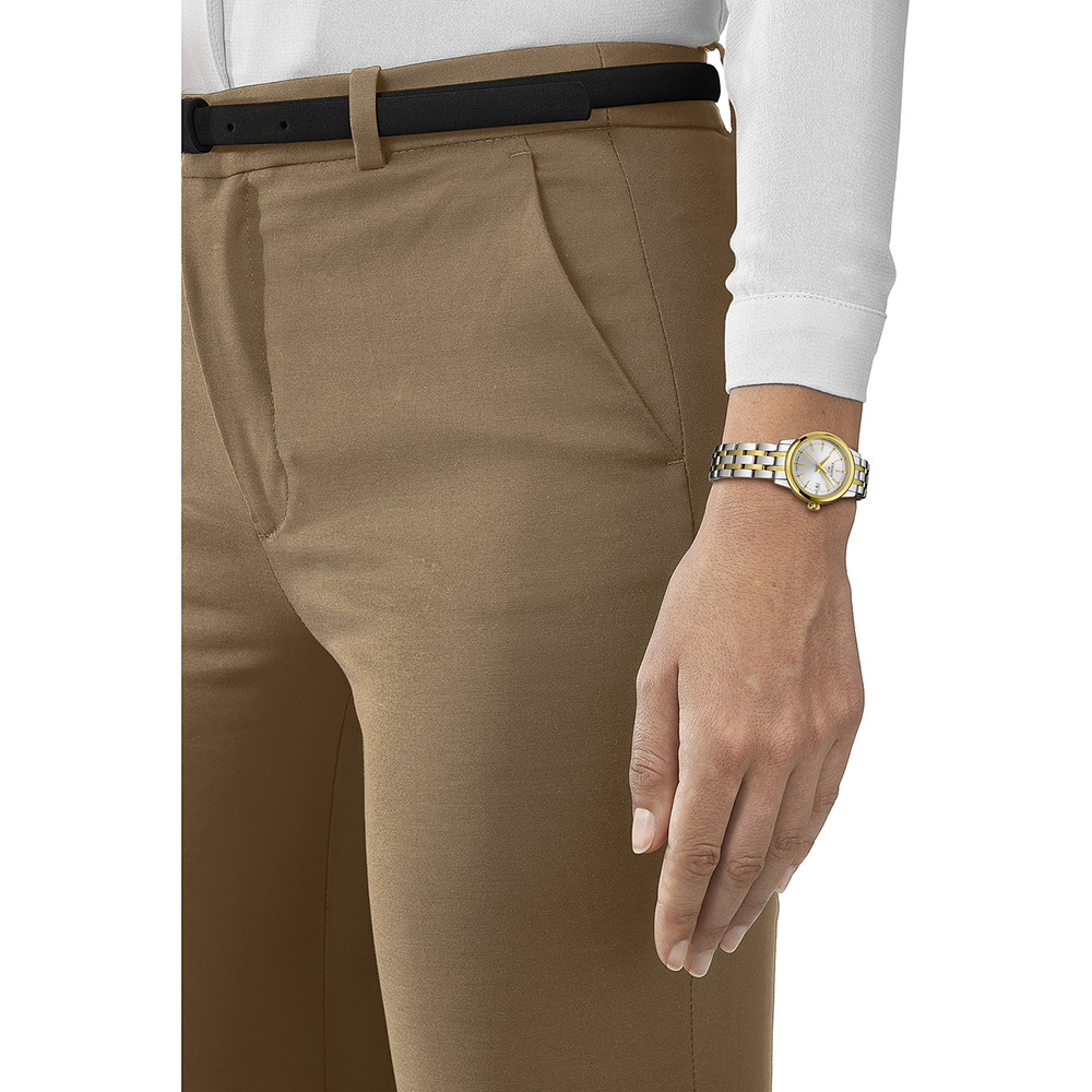 Die Tissot Classic Dream Lady verfügt über ein 316L-Edelstahlgehäuse, kratzfestes Saphirglas sowie ein präzises Swiss Made Quarzwerk mit Endanzeige der Batterielebensdauer. Das Zifferblatt mit Datumsanzeige und schmalen Indexen verleiht der Uhr einen klassischen Look.