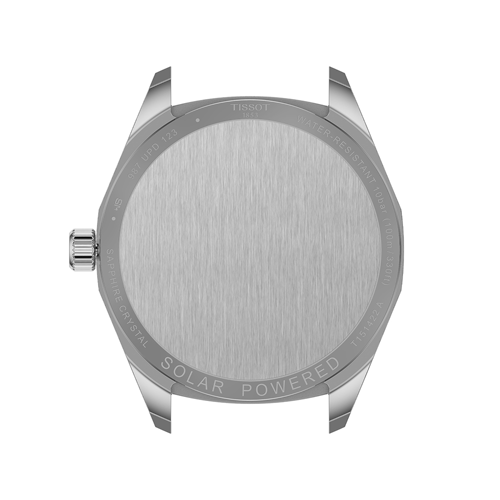 Mit seinem 39 Millimeter messenden 316L-Edelstahlgehäuse und der markanten, zwölfeckigen Lünette strahlt dieses Tissot PRC 100 Solar Quartz 39mm Modell Selbstbewusstsein aus. Unter dem flachen, sehr kratzfesten Saphirglas liegt ein solarbetriebenes Quarzwerk, das sich sowohl bei natürlichem als auch bei künstlichem Licht mühelos auflädt. Erreicht der Akkustatus ein niedriges Level, bleibt dies dank der End-of-Energy-Anzeige nicht unbemerkt.