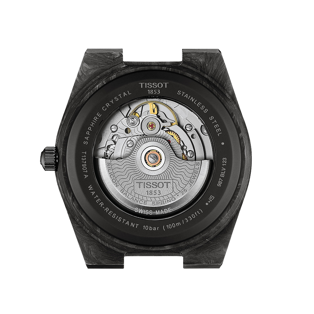 Diese Erweiterung der legendären Tissot PRX Powermatic 80 mit 40 mm Gehäusedurchmesser verfügt über ein schwarzes, marmoriertes Carbon-Gehäuse. Das innovative Material macht jede Uhr einzigartig und sorgt für wenig Gewicht und Langlebigkeit. Es wurde für optimale Leistung unter anspruchsvollen Bedingungen entwickelt und ermöglicht es, an Grenzen zu gehen und diese zu verschieben. Der perfekte Begleiter für urbane Abenteurer, die sowohl Funktionalität als auch markanten Style suchen.