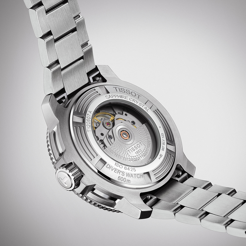 Gemäß der ISO Norm 6425 als professionelle Taucheruhr zertifiziert, beeindruckt sie durch ihre Wasserdichtigkeit bis zu einem Druck von 60 bar (600 m / 2000 ft), ein automatisches, bei 9 Uhr seitlich in das Gehäuse integriertes Heliumventil, lumineszierende Zeiger und Indizes sowie ihre einseitig drehbare, griffige Taucherlünette mit schwarzer Keramik-Einlage.