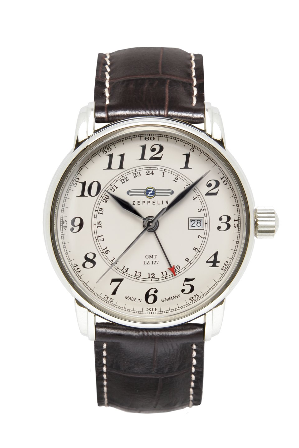- Gehäuse aus Edelstahl, satiniert, aufwendiges handgearbeitetes Gehäuse mit den typischen Zeppelin-Ringen am Gehäuserand,