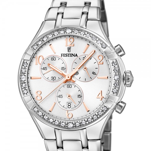 Festina Damen Uhr F20400/1 mit einem Edelstahlgehäuse, einem Mineralglas und einem Edelstahlband. Festina-Uhren sind die perfekte Mischung aus Eleganz und Funktionalität. Festina bietet herausragendes Design, ständige technologische Innovation und ein hervorragendes Preis-Leistungs-Verhältnis.