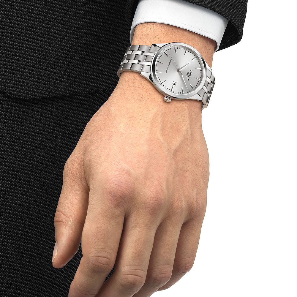 Nach der Weiterentwicklung ihres Designs präsentiert sich die beliebte Tissot Classic Dream auch in Varianten mit zuverlässigem Automatikwerk. Ihr zeitloser Stil macht diese Uhr zu einem Klassiker, der Raffinesse und Eleganz ausstrahlt. Im 316L-Edelstahlgehäuse schlägt das Swiss Made Powermatic 80-Uhrwerk mit patentierter Nivachron-Spirale. Dieses Tissot Classic Dream 40mm Modell besitzt ein silberfarbenes Zifferblatt mit Datumsanzeige, das sicher geschützt unter kratzfestem Saphirglas liegt. Das ebenso massive wie flexible 316L-Edelstahlarmband verfügt über eine Butterfly-Faltschließe mit Drückern. Dank Schnellwechselsystem lässt es sich einfach und werkzeuglos gegen ein anderes passendes Armband austauschen.